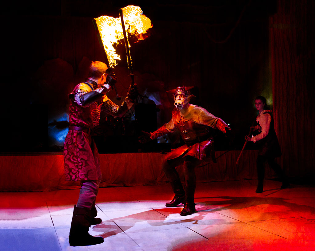 For this Narnia themed Christmas Party, IA Productions were asked to provide a dinner show that not only featured some great speciality acts, but also culminated in a spectacular sword fighting finale.